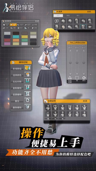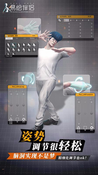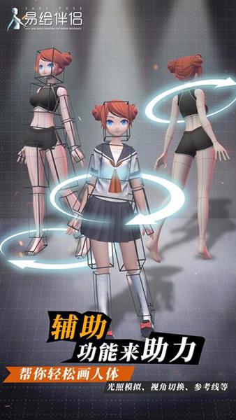 易绘伴侣是一款主打三维人物作画辅助的软件,如果想要为自己的画作新增角色,或者想要练习人体的绘画技巧,那么这款软件便是一个不错的选择!其中用户可以自行设置三维人物模型的动作、发型、服装颜色、眼睛样式等内容,更有运动、舞蹈等预设动作,来帮助用户快速获取想要的动作,并支持自行调整绘制角度,而在调试完毕后,即可对照进行绘图工作,非常方便!