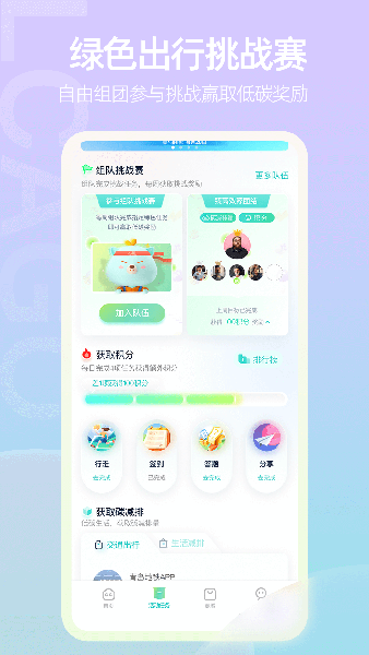 【组队挑战赛】日常组队挑战活动,每周完成青碳行的低碳出行的挑战目标,即可获得奖励