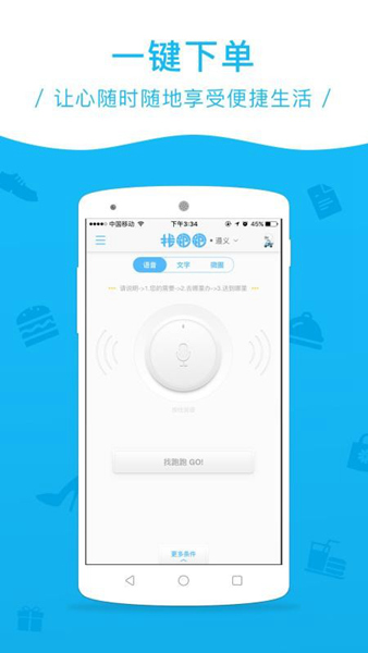 1、用户可以在线下单,说明需要办理的事情,需要跑跑人员去哪里办事,然后到哪里交接任务就可以了,非常方便;