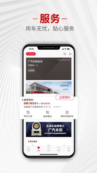 服务:维修保养不用愁!轻松一键预约服务;维修履历、维修进度实时查看