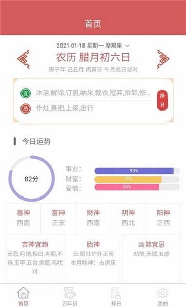 1、黄历:可查询黄历宜忌、节日节气、选择吉日、时辰宜忌等