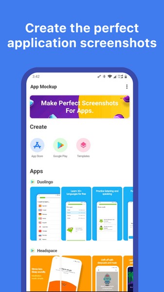 使您的应用程序屏幕截图比以往更快。 App Mockup具有适用于每种类型的应用程序的模板。只需单击一个按钮,即可更新设备框架,布局,渐变,标题和副标题。