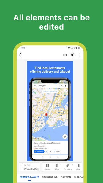查看屏幕快照在每种设备上在App Store和Play Store上的外观。您甚至可以在黑暗模式下预览。