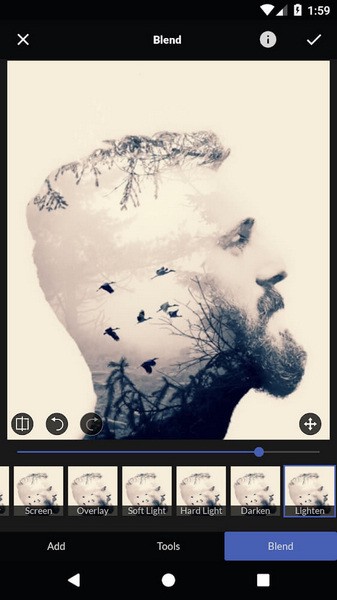 *多种融合模式,如变暗、变亮,以创建双重曝光、多重曝光以及其他效果