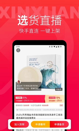 辛选帮app是为主播提供甄选商品的供货平台。依托辛选平台强大的供应链能力,辛选帮app精选万千优质商品,以极具竞争力的品质和价格,为主播提供货品支持。主播无须一一对接品牌商,即可自由选货,一键上架,通过直播、短视频等形式带货,达成商业变现。辛选帮是为主播提供甄选商品的供货平台。
