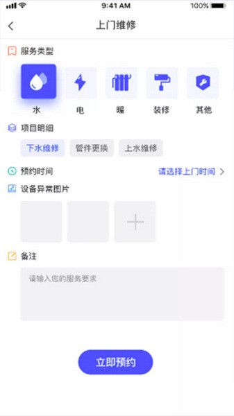 提供维修预约,家电清洗,家居安装,水暖维护,线路检测等功能。