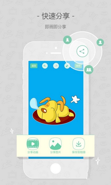 3.蜡笔小牛还可以记录用户的绘画过程,并以HTML5页面的形式展现,用户可以向自己的好友分享并展示自己的创作过程和才华。
