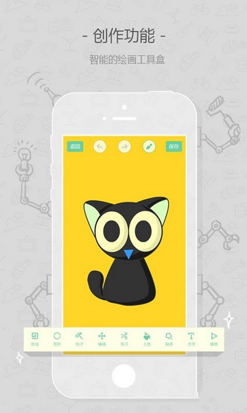 用户不再使用传统的画笔作画,而是使用独创的工具完成自己的创作,例如用户可以通过独创的线条工具和勾线工具拖动和勾勒出一幅幅完美的画作,通过刷子来为作品上色。
