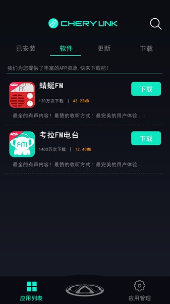 1、首先,在奇瑞助手app的“软件”页里下载您最爱的应用;