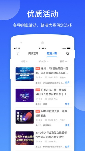 用户通过软件可以找到各种创投活动,快速参与活动开阔眼界;