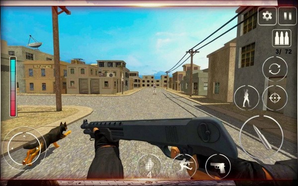 2、玩家可以选择不同的武器与狗,在射击时,可以召唤狗来协助作战。
