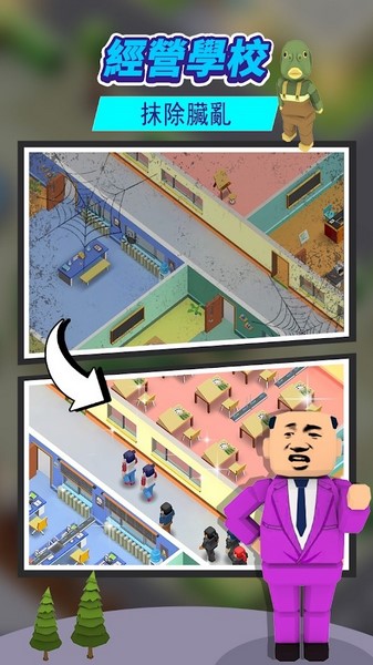 《Idle School Tycoon》是一款休闲模拟经营手游,无限金币钻石版本更是让玩家轻松获取资源,畅快体验。游戏画风诙谐搞笑,玩法丰富,玩家化身校长,通过建设设施、邀请老师、吸引学生来发展学校。同时,还需要清理校园环境,消除脏乱差的地方,让学习更专注。