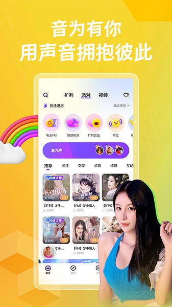 扩列交友、主播点唱、剧场PIA戏、声音电台,超多有魅力有才华的声音主播,实时在线,给你温暖陪伴