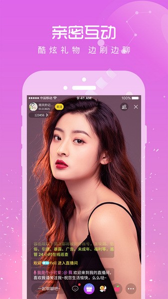 2、互动交友,美音乐、女的唱歌、舞蹈表演、乐器、户外、情感咨询……主播有颜又有料,秀场好看好玩又有趣,丰富的聊天形式,你想知到的都可以问主播。