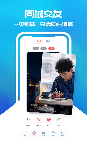 3、支持同城或者是附近用户社交,让你告别异地恋,超多有趣的互动玩法。
