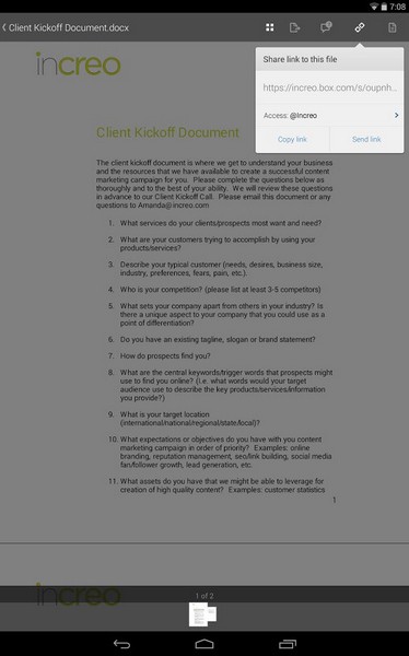 Box网盘不仅支持与亲朋好友、同事在线共享重要照片,还能与家人保持同步。其主页屏幕小工具让我实时跟进业务内容,轻松处理视频、文档以及高质量PowerPoint演示文稿。安全且易于使用,保证你不会漏掉任何一个人。