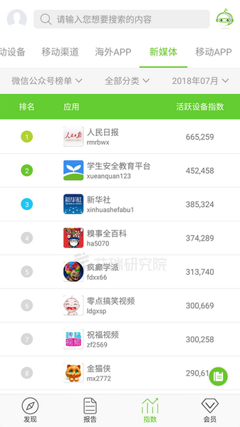 PC和APP指数排名和影视热剧指数排名。用户可获取实时排名数据,并根据自己的商业目的,收藏指数进行实时监控对比。分析海量数据,建立多个用户行为指标,真实反映中国互联网整体和移动互联网市场客观情况,为目标客户提供市场决策依据。