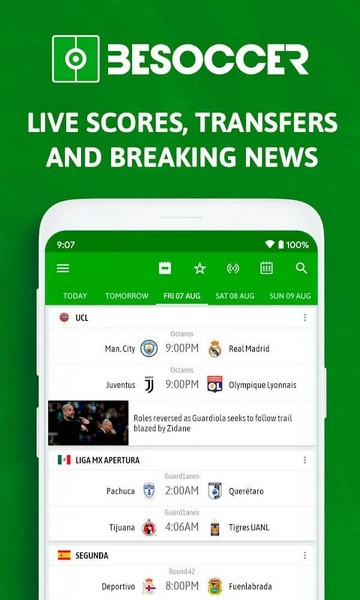 来自世界上所有联赛和比赛的所有统计数据、新闻和结果:西甲、英超、意甲、德甲、法甲、MLS、MX 以及其他比赛,如冠军联赛、欧罗巴联赛、Concacaf 冠军联赛、金杯赛、欧锦赛、世界杯等,还有女足