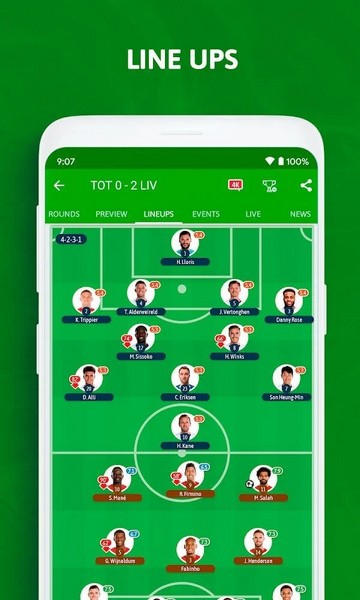 接收和个性化实时通知或您最喜欢的球队、球员或比赛:所有目标、结果、表格、球队名单、阵容、卡片、伤病、转会等。