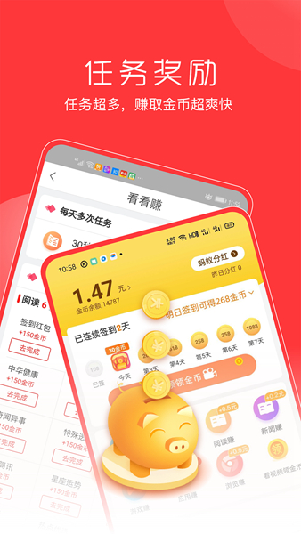 这个App里内容很丰富,热点新闻、搞笑视频、明星八卦样样都有。而且它还会根据你的兴趣推荐相关内容,简直就是量身定制的娱乐套餐。除了看新闻赚钱,还有各种福利活动,比如邀请好友也能赚奖励,感觉比单纯刷短视频有意思多了。