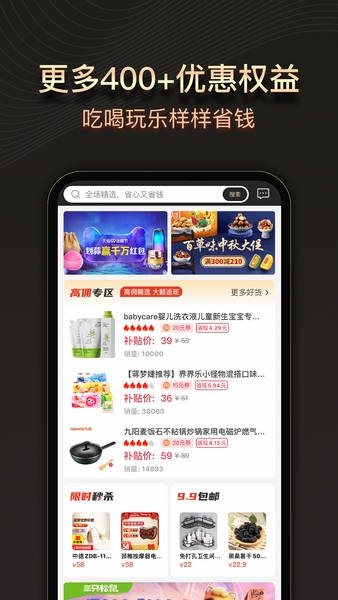 1、有丰厚的购物福利,用户在购物的同时可以省下一大笔购物费用;