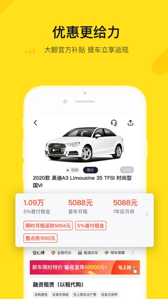 月租:打包购车款&购置税&保险,最长36期,弹性十足