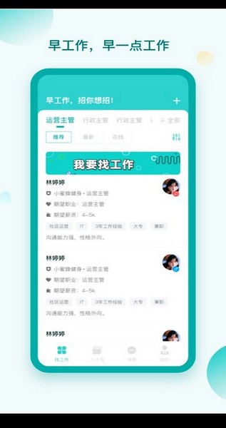 “早工作”是一款非常实用的在线求职招聘软件,它能够帮助用户快速找到适合自己的工作机会。通过这款软件,用户可以搜索到海量的招聘信息,并根据自己的求职意向进行筛选,比如薪资、职位类型、工作地点等。软件还支持附近职位的搜索功能,这对于想找离家近工作的用户来说非常方便。
