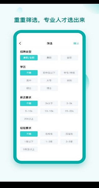 3、不同的工作类型都有,能够让你在这里便捷的查找分析符合自己心目中的岗位。