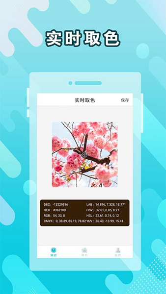1、拍照取色,一键点击就能马上看到图片上的色彩;