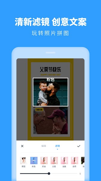 拼图助手支持粉夏、清新、物语、柯达、慕斯等10多种滤镜