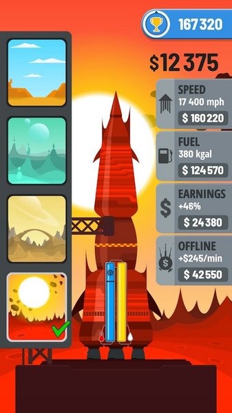 3、玩家可以使用游戏内的金币来对自己的火箭进行改造,使它们更强劲,飞得更高。