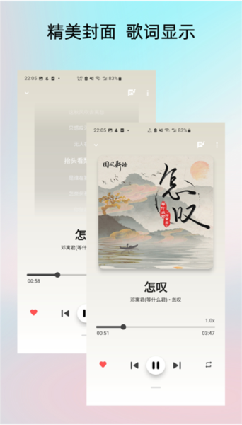 ·对于没有封面的歌曲,还能自动获取歌曲封面,使自己的音乐库界面美观不单调