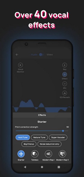 进入录音室后,您可以通过轻触屏幕顶部中心标记为“音频”和“视频”的切换按钮在音频和视频录制之间切换。