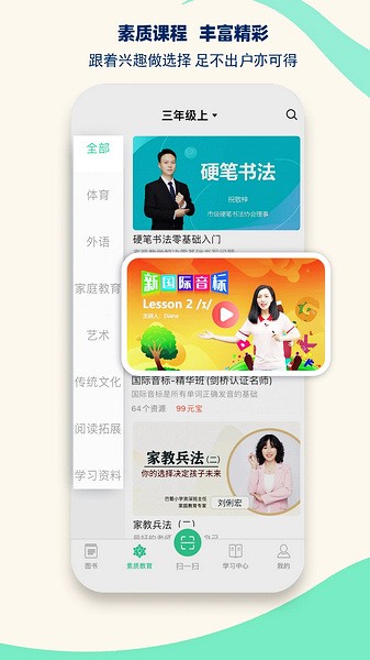 丰富多彩的素质教育课程,为你开辟更广阔的学习天地,琴棋书画、语言编程、文化体育,跟着兴趣做选择,提升更全面,生活更有趣。
