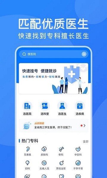 挂号之前能够自由的挑选医生,三甲医院的专家医生号源都能及时预约;