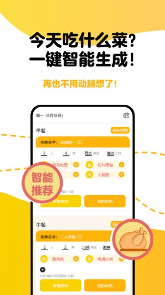 每日菜单安卓版是一款非常好用的菜谱软件,能够自动为用户推荐每一餐的菜谱,在保证营养摄入均衡的同时也能够让大家有好的胃口。大量的菜谱和图文烹饪教程大大降低的做饭烧菜的难度,更提供了热量查询的功能,用户们还可以将剩余的食材输入到每日菜单软件中来获得更多的菜谱推荐。此外,贴心的常用菜单功能可以让大家将自己喜欢的菜品添加进来。