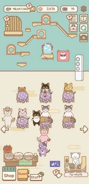 4、沉浸治愈体验:舒缓的背景音乐、温暖的画面色调,搭配猫咪互动细节,带来沉浸式的治愈经营体验。