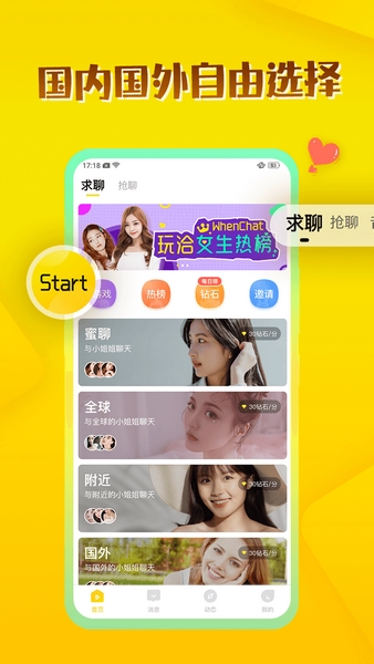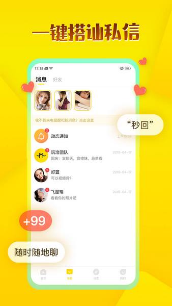 【快速聊天】单身男女都可一键发布聊天请求,永远不知道下一个她/他是怎样的类型。