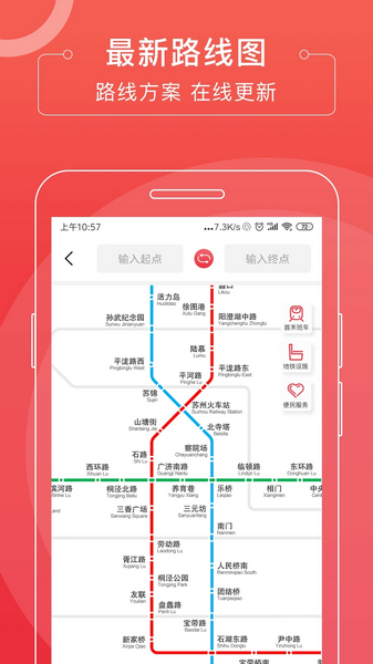 苏e行app是苏州地铁研发出来的方便苏州市民乘地铁的软件。现在的人,出门必带的工具不是钱包,也不是卡,而是一部智能手机。扫码付款已经是国内很普遍的付款方式。因此软件是支持扫码乘车的,无须带零钱或者带交通卡,便捷乘车方便大家的生活。先乘车后付款,不必再担心票卡的余额不足,也不用再浪费时间去排队充值。支付渠道多样,不仅有支付宝、微信,还支持市民卡、银联、苏宁金融等。计次票上线,帮你乘车更优惠。