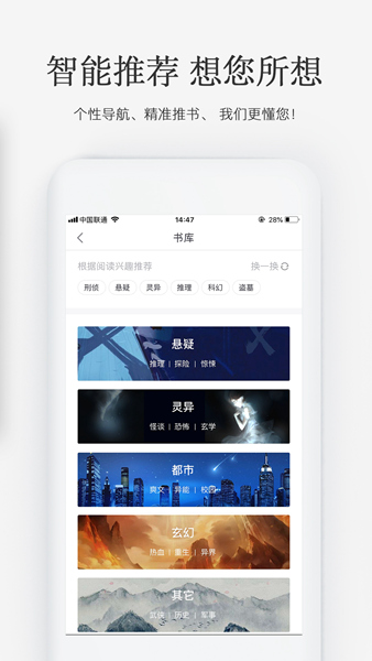 分类功能:读者可以在里面的查找自己感兴趣的小说;