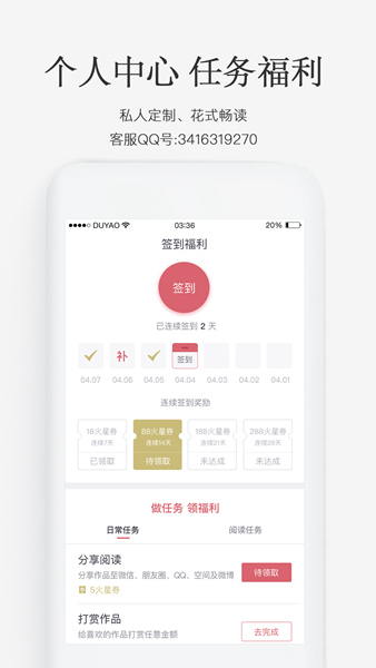 奖品更加丰富的连续签到奖励,只要坚持,看书不花钱。
