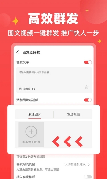 微商宝贝是一款非常实用的微商拓客助手,若是想要更加轻松的进行拓客、推广产品,那么这款软件便是一个不错的选择,其专为从事微商行业的用户准备,界面清爽功能强大,可以帮助用户轻松搞定各种图片的编辑处理,并支持添加文字、图片水印!而在完成推广内容的编辑后,还能将其一键快速群发,更能为你精准拓展目标人群,为你带来更多帮助!