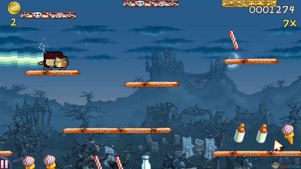 以国外爆红的gif动画为主题的疾走游戏,特别配上国外过千万点击量的视频。游戏中彩虹喵要吃路上遇到的各种道具避开对面跑来的猫,走的越远得分越高,游戏音乐非常轻松愉快。