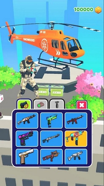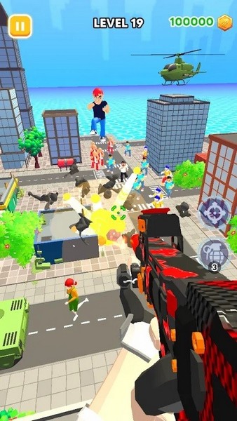 4、完成关卡以升级您的枪支、瞄准镜、服装和直升机,并在城市的各个区域中前进,达到令人敬畏的老板关卡并获得额外奖励。试试手枪、霰弹枪、突击步枪、冲锋枪、狙击手、手榴弹,甚至火箭发射器,找到可以帮助你结束追逐的武器。