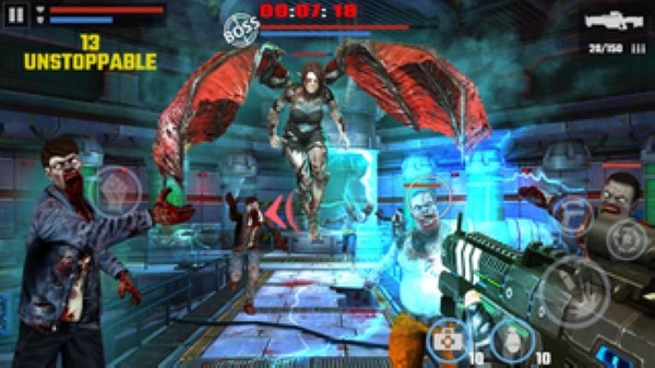 2、在这场僵尸射击战中,为了抢射门和狙击手,必须攻击并杀死目标。