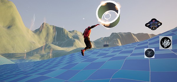 4、我们移动角色从平台上跳下,然后按住滑翔键位进行滑翔,来到另一个平台;