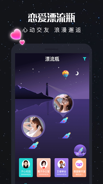 漂流瓶匿名的聊天让你敞开心扉,卸下伪装,寻找那个让你怦然心动的人;