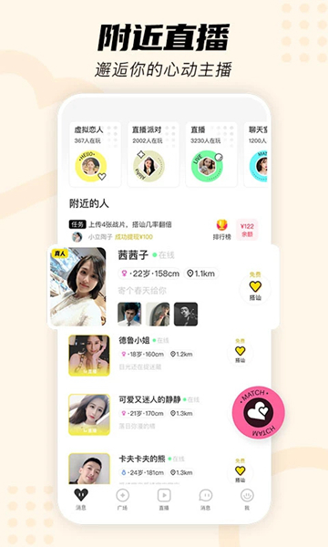 【发现附近】基于位置信息,通过智能算法为你快速匹配周边异性,附近的人随时约见!