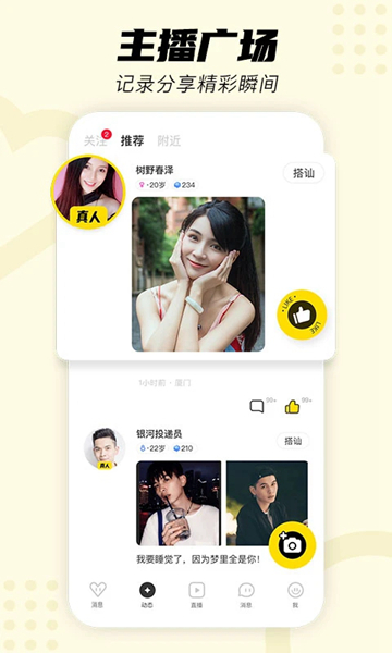 软件里有好多好玩的功能,比如直播互动、动态广场、虚拟恋人等等。特别是同城直播和短视频社交,感觉比其他交友软件更有趣一些。主播们在线 PK 和游戏互动让整个过程不会那么单调乏味,送礼物也很贴心,可以表达心意。
