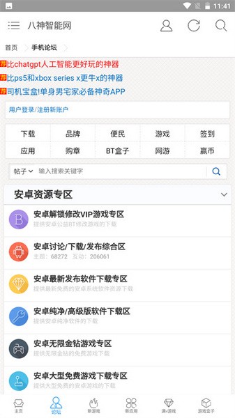 4、注册成功后点击社区论坛可以看到众多游戏、软件专区